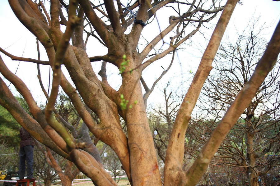 Người chủ vườn có nhiều năm kinh nghiệm cho biết, những cây mai của ông có giá trị lớn vì đều thuộc loại cổ, có khi tới cả trăm năm. Tán cây rộng, có nhiều hoa và nụ.