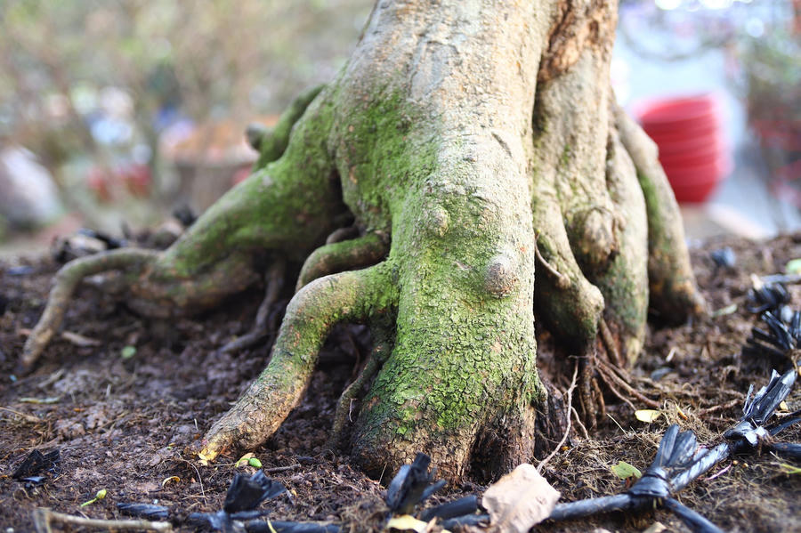 Những cây mai đều phát triển tự nhiên, có tuổi thọ nhiều năm được ông Phúc mua về từ nhiều nơi, thân to, sù sì cổ kính.