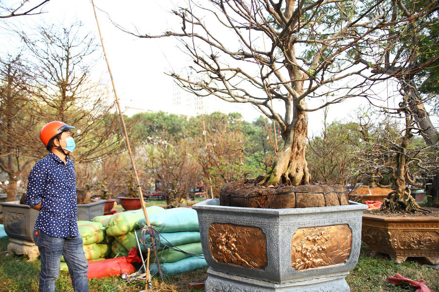 "Năm nay mùa Covid nên không biết sẽ bán được bao nhiêu cây. Nhưng năm ngoái, cũng tại chợ xuân này, tôi bán được 2 cây giá gần 3 tỷ đồng", chủ vườn nói.