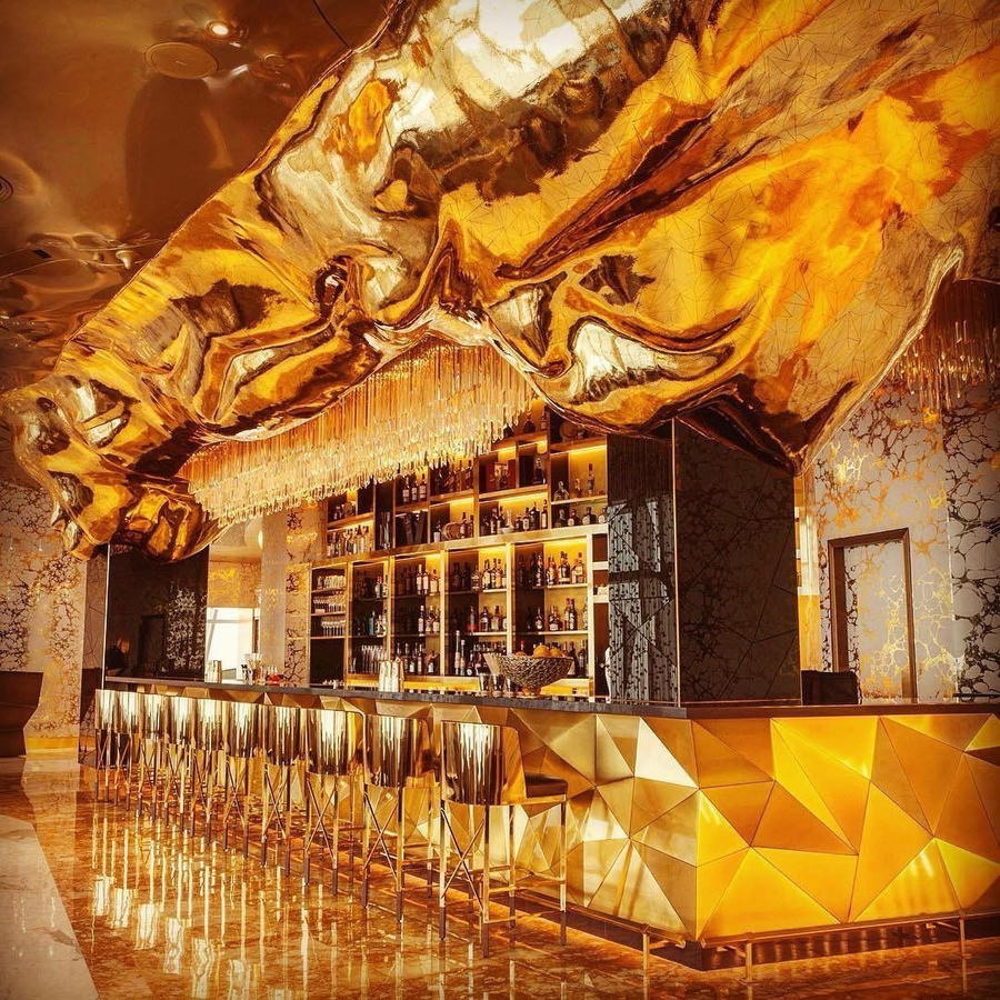 Hơn 24.000 m2 đá cẩm thạch, 8.000 m2 lá vàng và hàng ngàn viên pha lê được sử dụng để trang trí bên trong tòa tháp này.