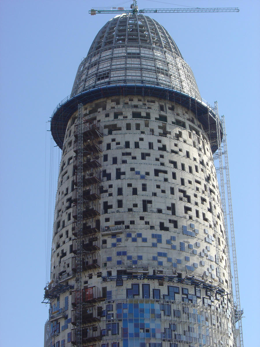 Tòa tháp được ví như mạch nước phun lên không trung ở Tây Ban Nha này được khoác 60.000 tấm áo kính xanh đỏ và sở hữu tới 4.500 cửa sổ.