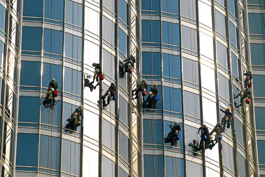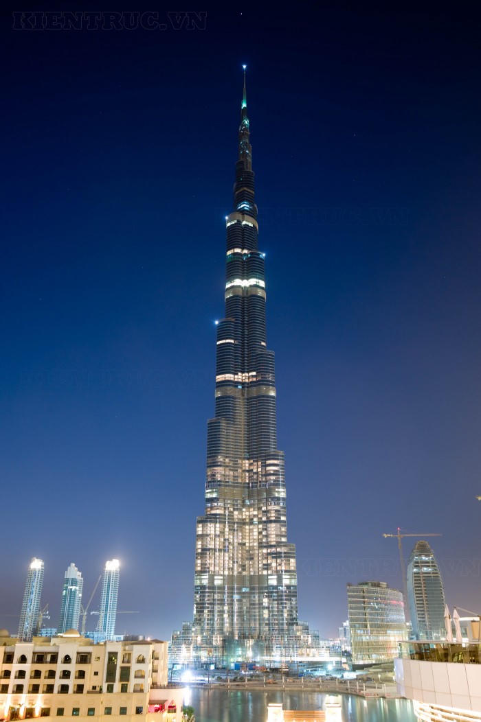 Để xây dựng tòa tháp Burj Khalifa cao 828m, trọng lượng không người 500.000 tấn này phải mất 5 năm cùng 12.000 nhân công.