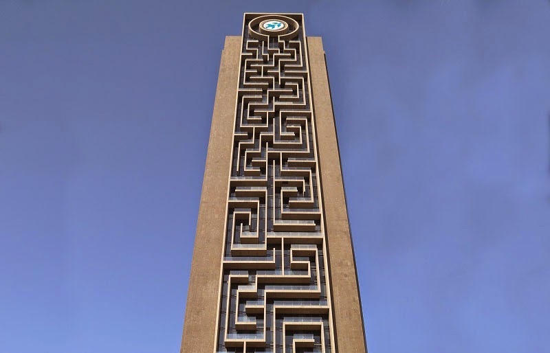 Theo kiến trúc sư người Đức Planquadrat - "cha đẻ" của tòa tháp, những đường mê cung được xây dựng thực chất là chuỗi ban công các căn hộ và văn phòng trên tòa nhà.