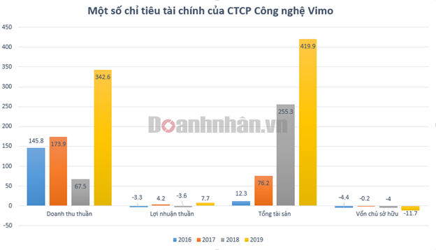 Tuy tình hình kinh doanh có cải thiện nhưng điều đáng chú ý là năm duy nhất báo lãi của Vimo là 2017 với 4,2 tỷ đồng. Năm 2019, dù doanh thu tăng mạnh nhưng Vimo vẫn chịu lỗ, âm vốn chủ sở hữu tới 11,7 tỷ đồng.