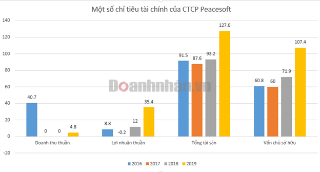 Trong 4 năm gần nhất, Peacesoft báo lỗ vào năm 2017. Năm 2019, công ty báo lãi 35,4 tỷ đồng, tỷ suất sinh lời trên vốn chủ sở hữu là 32,9%.