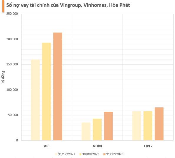 Tuy nhiên, Vingroup cũng ghi nhận số nợ vay tài chính tăng 19.836 tỷ đồng lên mức 213.312 tỷ đồng. Nhờ tăng đi vay nợ đã giúp lượng tiền mặt và tiền gửi của công ty này tăng. Số lãi tiền gửi của công ty này là khoảng hơn 570 tỷ đồng, trong khi phải trả hơn 4.500 tỷ đồng chi phí lãi vay trong năm 2023.