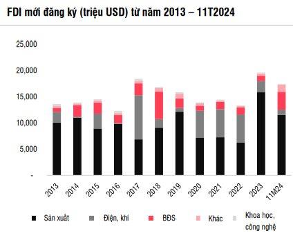 Dù vậy, sự chậm lại trong việc mở rộng vốn đầu tư trực tiếp nước ngoài (FDI) vào các khu công nghiệp có thể kéo dài trong năm 2025 khiến diện tích đất công nghiệp cho thuê giảm. Nguyên nhân chính tới từ biến động tỷ giá; cơ sở hạ tầng hạn chế ở miền Nam và diện tích đất có sẵn trong các trung tâm KCN hạn chế gây khó khăn trong việc lựa chọn địa điểm đầu tư tối ưu. Vì vậy SSI dự báo nhu cầu thuê đất KCN sẽ chưa phục hồi trở lại trong năm 2025 do nhiều yếu tố ảnh hưởng đến các khách thuê chính từ Hoa Kỳ và Trung Quốc.