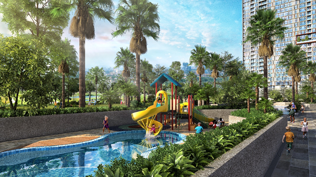 Trong nội khu dự án, Chủ đầu tư cũng dành nhiều diện tích để phát triển không gian xanh gồm hệ thống cây xanh nhiều tầng, bãi cỏ, đường dạo bộ, bể bơi, khu vui chơi… không chỉ tạo ra bầu không khí trong lành mà còn mang tới tầm nhìn khoáng đạt cho mỗi căn hộ.