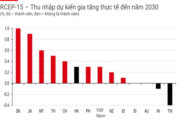 Theo đại diện HSBC, RCEP là một trong những ưu tiên hàng đầu của Việt Nam trong chiến lược hội nhập. Hiệp định gần nhất với nhiều lợi ích là Hiệp định thương mại tự do Việt Nam-EU (EVFTA) được phê chuẩn vào tháng 6 năm nay. “Việt Nam đã và đang rất trung thành với nguyên tắc mở cửa và đã có trong tay 12 hiệp định tự do thương mại, cả song phương và đa phương”, HSBC nhận định.