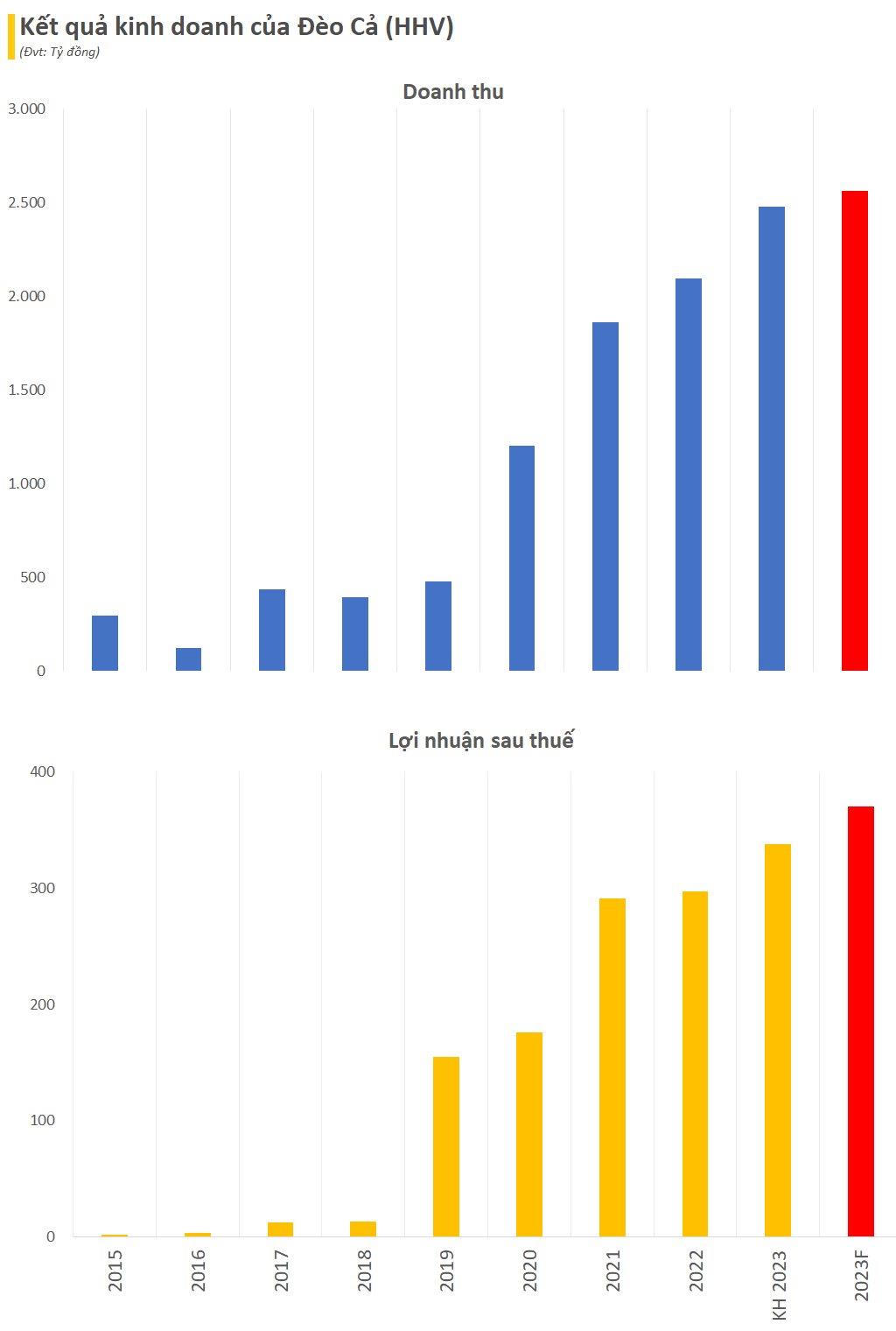 Gần đây, HHV đã đưa ra ước tính kết quả kinh doanh 2023 với doanh thu đạt 2.560 tỷ đồng, tăng 22% so với năm 2022. Lợi nhuận sau thuế dự kiến đạt khoảng 370 tỷ đồng, tăng 24% so với cùng kỳ năm trước và vượt kế hoạch khoảng 9%. Kết quả kinh doanh tốt hơn kỳ vọng nhờ các dự án BOT có lưu lượng xe tăng trưởng trở lại sau khi dịch Covid giúp doanh thu thu phí của các dự án, cùng với đó hoạt động xây lắp cũng đóng góp tỷ trọng khá lớn trong tổng doanh thu của doanh nghiệp (~36%) khi HHV đang triển khai thi công đồng thời hàng loạt các dự án lớn.