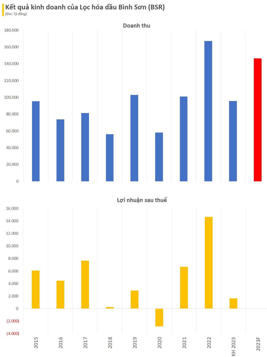 Công ty chưa đưa ra con số lãi ước tính cả năm, chỉ cho biết vượt xa kế hoạch (chỉ tiêu lãi sau thuế năm 2023 là 1.628 tỷ đồng). Theo BSR, trong năm 2023, sản lượng ước đạt hơn 7,35 triệu tấn sản phẩm (vượt 31% kế hoạch), cao nhất kể từ khi Nhà máy Lọc dầu Dung Quất đi vào vận hành thương mại.