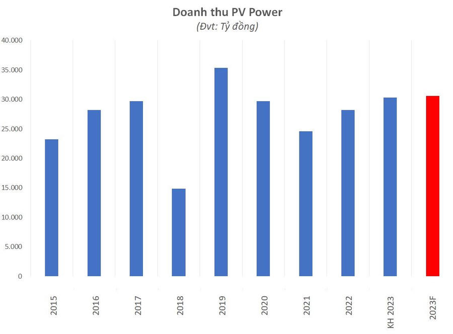 Tích cực không kém, Tổng công ty Điện lực Dầu khí Việt Nam (PV Power, mã chứng khoán POW) ước tính trong năm 2023, tổng sản lượng điện toàn tổng công ty đạt 14.973 triệu kWh, tăng 5% so với năm 2022. Doanh thu của toàn tổng công ty ước đạt gần 30.614 tỷ đồng, bằng 101% kế hoạch năm 2023 và tăng 6% so với năm 2022 và là mức cao nhất kể từ 2020 đến nay. Riêng doanh thu công ty mẹ chiếm 22.497 tỷ đồng, bằng 123% năm ngoái. Công ty chưa công bố kết quả lợi nhuận cả năm.