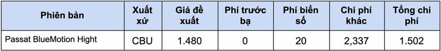 Với chương trình hỗ trợ 100% phí trước bạ của Volkswagen, giá lăn bánh của Passat BlueMotion Hight giảm hơn 177 triệu tại Hà Nội. Đây là mẫu sedan nhập khẩu được hỗ trợ phí trước bạ cao nhất Việt Nam hiện nay.