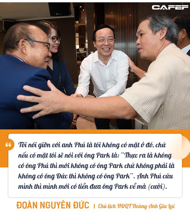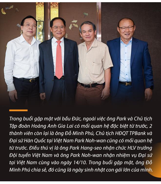 Giải thích về việc có mặt bất ngờ tại Hà Nội và có hẹn với ông Park Hang-seo (HLV trưởng đội tuyển Việt Nam), ông Park Noh-wan - Đại sứ Hàn Quốc tại Việt Nam và ông Đỗ Minh Phú – Chủ tịch HĐQT TPBank kiêm Nhà sáng lập Tập đoàn Doji, bầu Đức nói: Tại sao lại có anh Phú trong buổi gặp mặt này thì chuyện cũng cần có dẫn dắt một tí.