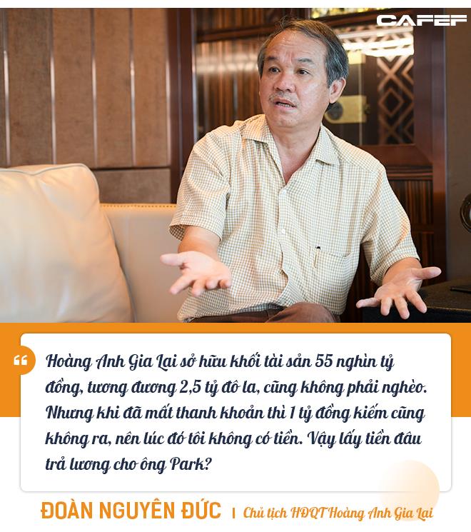 Thời điểm đó, Hoàng Anh Gia Lai sở hữu khối tài sản 55 nghìn tỷ đồng, tương đương 2,5 tỷ đô la, cũng không phải nghèo. Nhưng khi đã mất thanh khoản thì 1 tỷ đồng kiếm cũng không ra nên lúc đó tôi không có tiền. Vậy lấy tiền đâu trả lương cho ông Park?