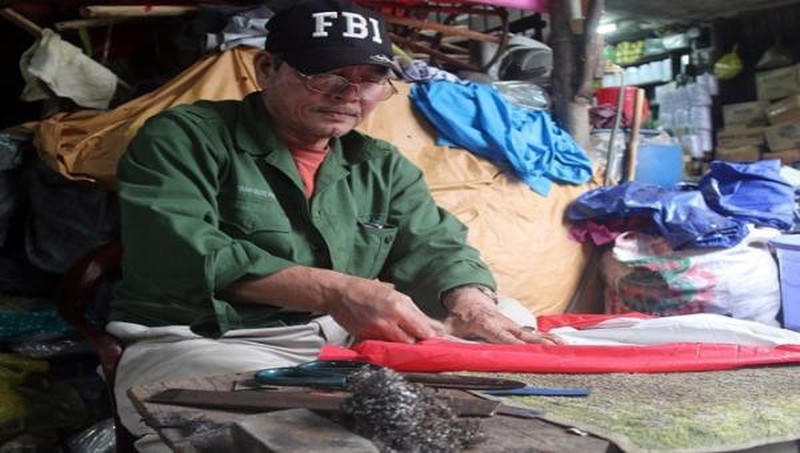 Hồi đó, áo mưa tiện lợi mặc một lần chưa phổ biến nên hầu hết ai cũng sử dụng áo mưa cánh dơi, áo mưa bộ. Cứ mỗi khi rách, thủng chỗ nào là người ta lại mang đi vá, nhiều cái áo vá đi vá lại hàng chục lần…”, ông Lâm Thành Thuận (71 tuổi). Ông Thuận cũng chính là người thợ vá áo mưa cuối cùng còn sót lại ở chợ Đông Ba (TP Huế).