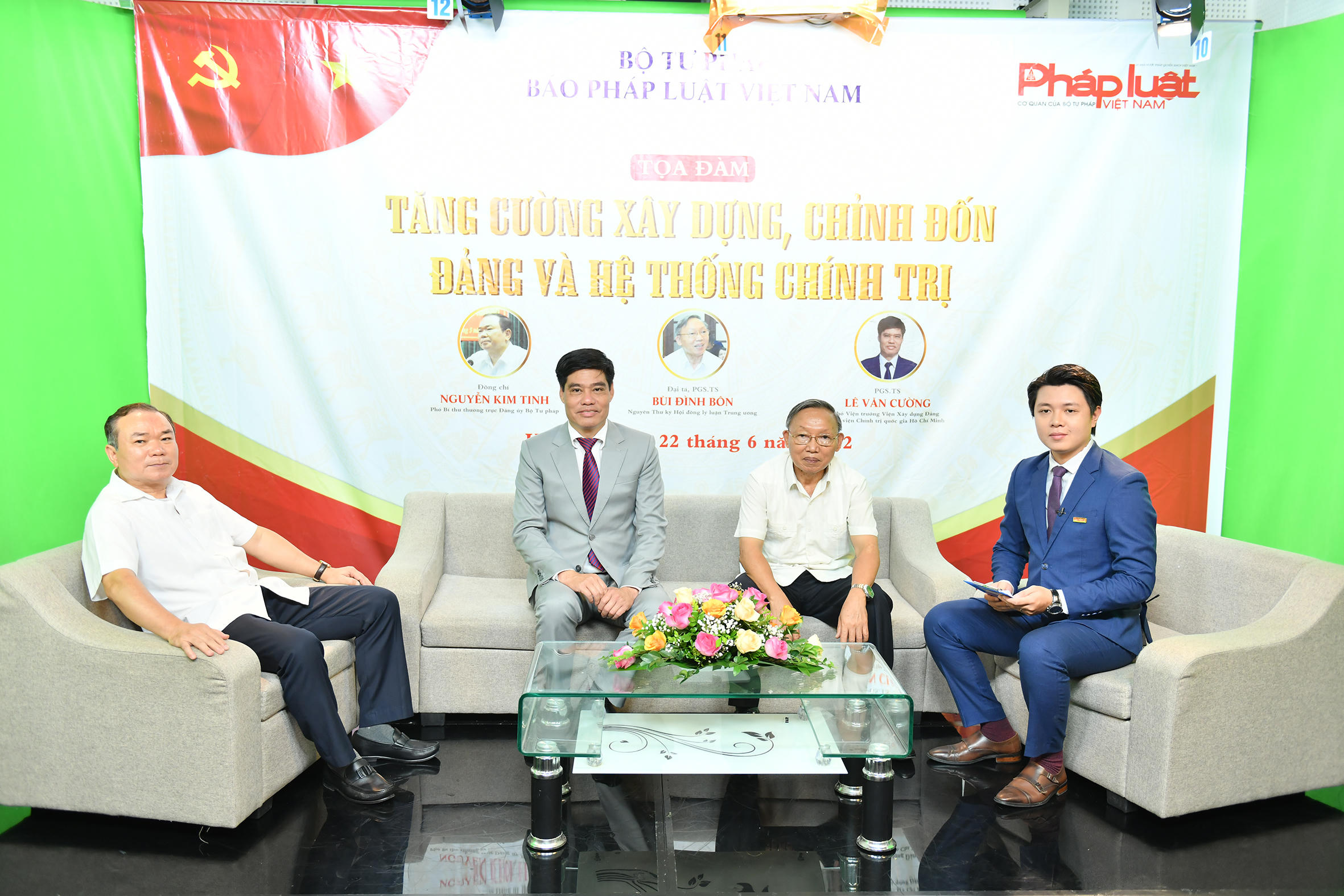 Tham dự Tọa đàm “Tăng cường xây dựng, chỉnh đốn Đảng và hệ thống chính trị” có ông Nguyễn Kim Tinh - Phó Bí thư Thường trực Đảng ủy Bộ Tư pháp; Đại tá, PGS.TS Bùi Đình Bôn - nguyên Thư ký Hội đồng lý luận Trung ương; PGS.TS Lê Văn Cường - Phó Viện trưởng Viện Xây dựng Đảng, Học viện Chính trị Quốc gia Hồ Chí Minh.