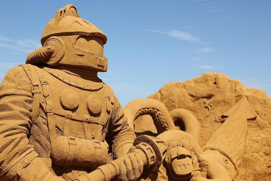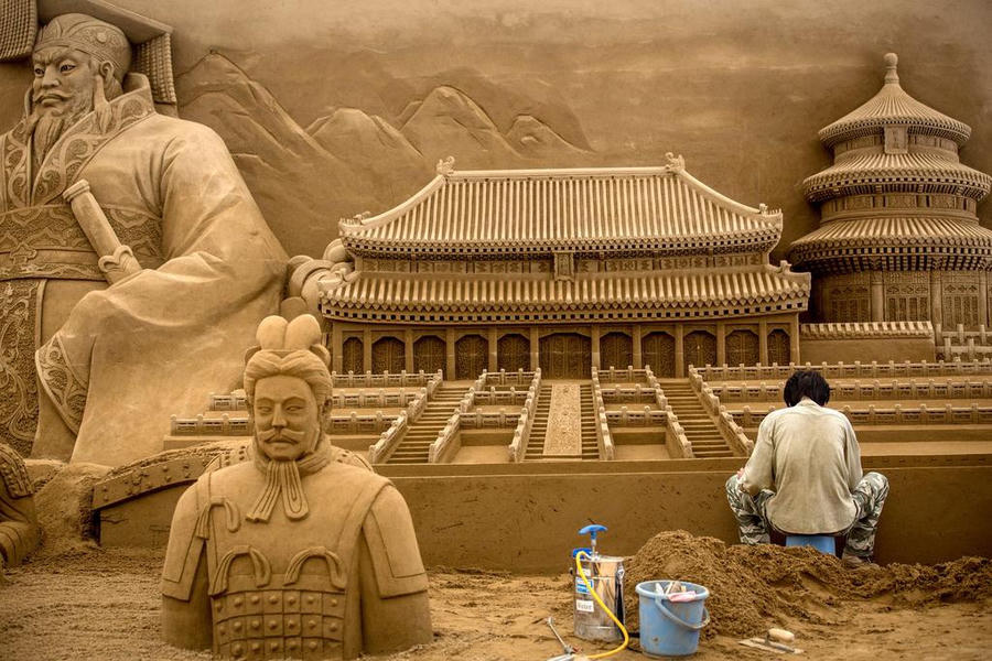 Không sử dụng gì ngoài cát và nước, các nghệ sĩ đã tạo ra nhiều tác phẩm đầy sáng tạo về những nhân vật truyền cảm hứng hay kiến trúc nổi tiếng thế giới.