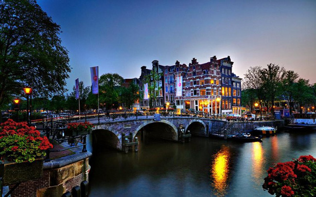 6. Amsterdam, Hà Lan: Amsterdam có những kênh đào khắp thành phố với có rất nhiều thuyền.