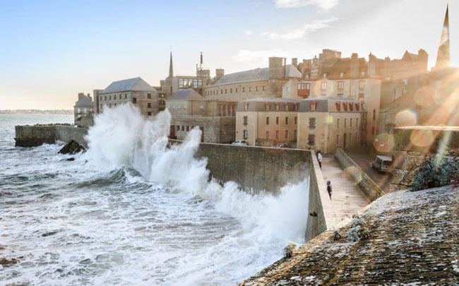 2. Saint-Malo, Pháp: Saint-Malo là một thành phố cảng với những bức tường tường bao xunhg quanh, nằm trên eo biển đẹp như tranh vẽ. Dân số của thành phố xinh đẹp là rất khiêm tốn nhưng nó lại tăng mạnh vào mùa du lịch.