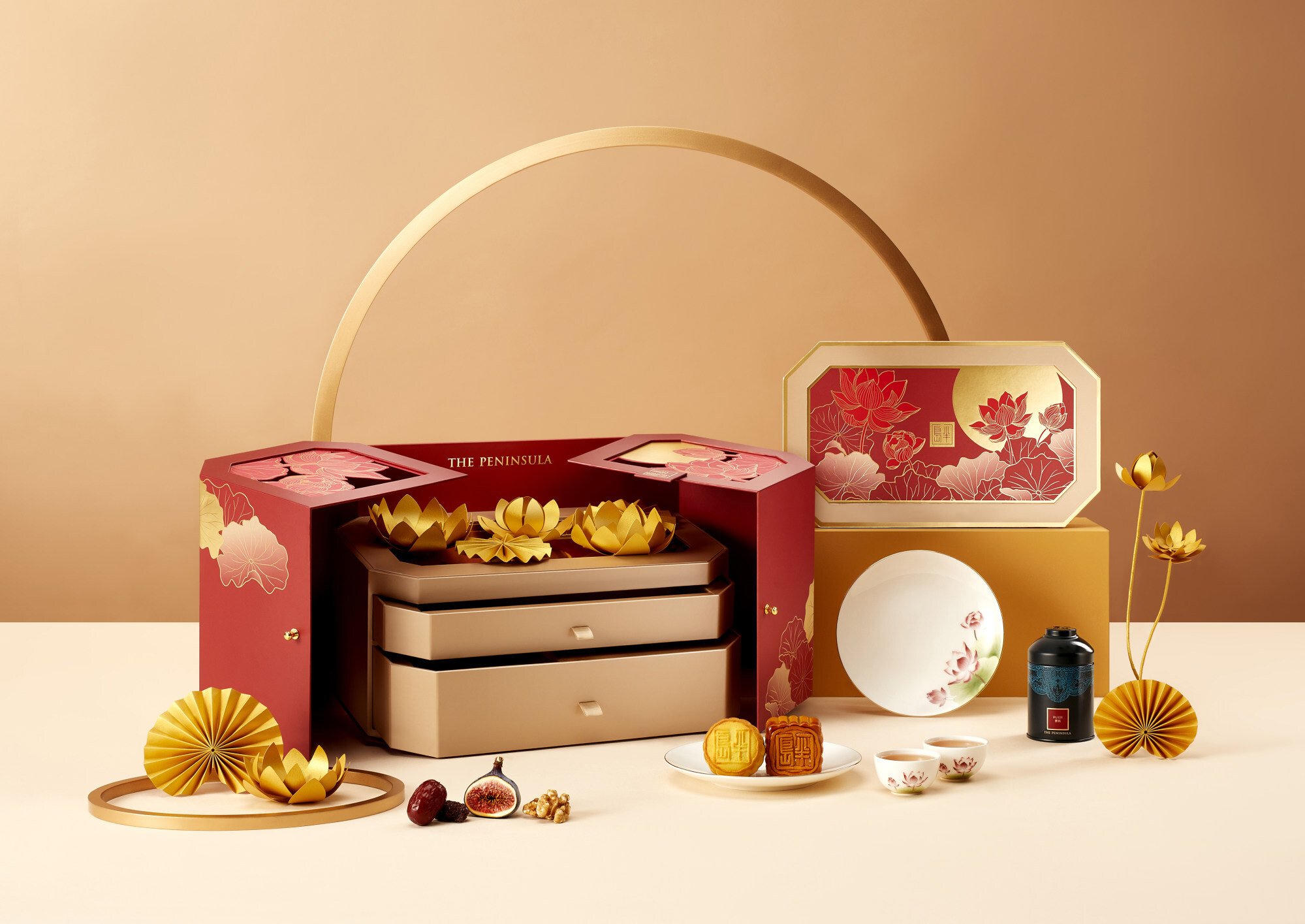 Khách sạn Peninsula của Hong Kong năm nay tung ra hộp quà Star Chef Moon Gazing mới có giá 294 USD (khoảng 6,8 triệu đồng). Hộp có tông màu đỏ và vàng bao gồm bánh trung thu nhân trứng sữa quả óc chó, quả sung và bánh trung thu nhân hạt sen đỏ. Sản phẩm cũng đã được bán hết.