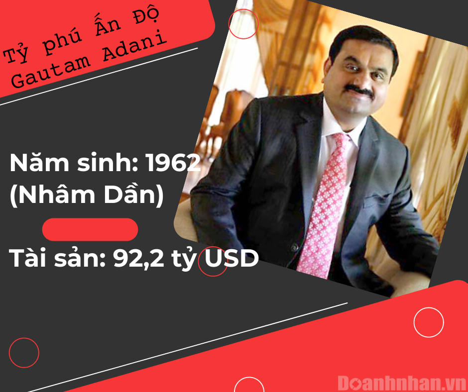 Tỷ phú Ấn Độ Guatam Adani hiện là người giàu thứ hai châu Á, và chỉ sau người đồng hương Mukesh Ambani. Vốn là người kín tiếng, ít xuất hiện trước truyền thông nhưng quyền lực của vị tỷ phú tuổi Dần này không hề nhỏ.