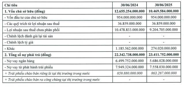 Về tình hình kinh doanh, tính đến ngày 30/6/2025, vốn chủ sở hữu của doanh nghiệp ở mức gần 10.470 tỷ đồng, giảm 2.185 tỷ đồng so với cùng kỳ năm trước.