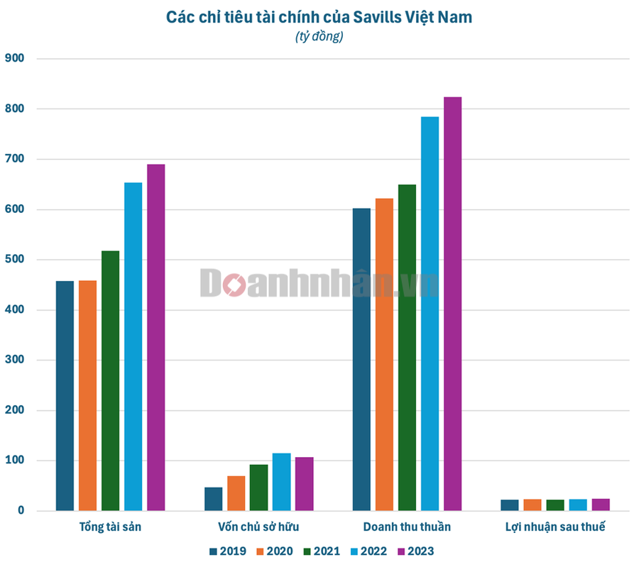 Savills Việt Nam thành lập tháng 10/2007, vốn điều lệ hiện tại là 6,7 tỷ đồng, hoạt động chủ yếu trong lĩnh vực tư vấn, môi giới, đấu giá bất động sản, quản lý, khai thác bất động sản,… Những năm gần đây, quy mô của Savills liên tục mở rộng. Tổng tài sản tăng mạnh qua từng năm, đạt gần 700 tỷ vào cuối 2023.