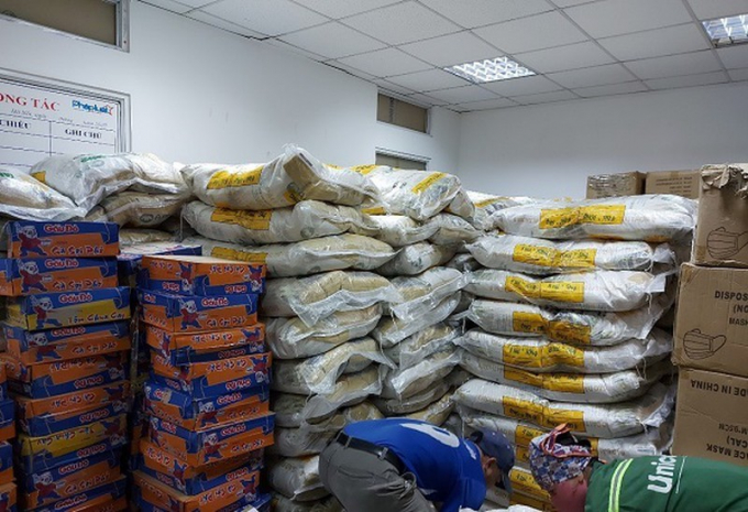 Phần quà gồm 200 bộ xét nghiệm (kit test) Covid-19, 07 tấn gạo, 50 thùng mì tôm, 50.000 khẩu trang y tế (1.000 hộp), 254 chai nước sát khuẩn, 650 bộ quần áo phục vụ phòng, chống dịch, 95 thùng bánh kẹo tặng các điểm chợ 0 đồng.