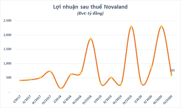 Công ty cổ phần Tập đoàn Đầu tư Địa ốc No Va (Novaland – mã CK: NVL) đã công bố báo cáo tài chính hợp nhất quý IV/2020 với kết quả kinh doanh có doanh thu 8.600 tỷ đồng và lợi nhuận sau thuế 3.884 tỷ đồng (vượt 6% kế hoạch năm).