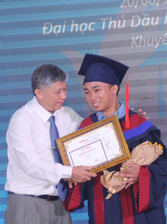Một trường hợp khác rất đáng nể phục là em Nguyễn Bá Toàn (sinh viên trường ĐH Thủ Dầu Một). Dù không may từ nhỏ đã bị hoại tử xương đùi và mắc căn bệnh hiểm nghèo khiến xương rất dễ gãy nhưng chẳng vì thế mà em bớt đi ý chí và lòng hiếu học. “Với phần học bổng này, em hứa sẽ cố gắng phấn đấu học tập, cố gắng trở thành người tốt có ích cho gia đình, cho xã hội để sau này san sẻ giúp đỡ nhiều hơn cho những cảnh đời còn kém may mắn hơn” Toàn xúc động nói.