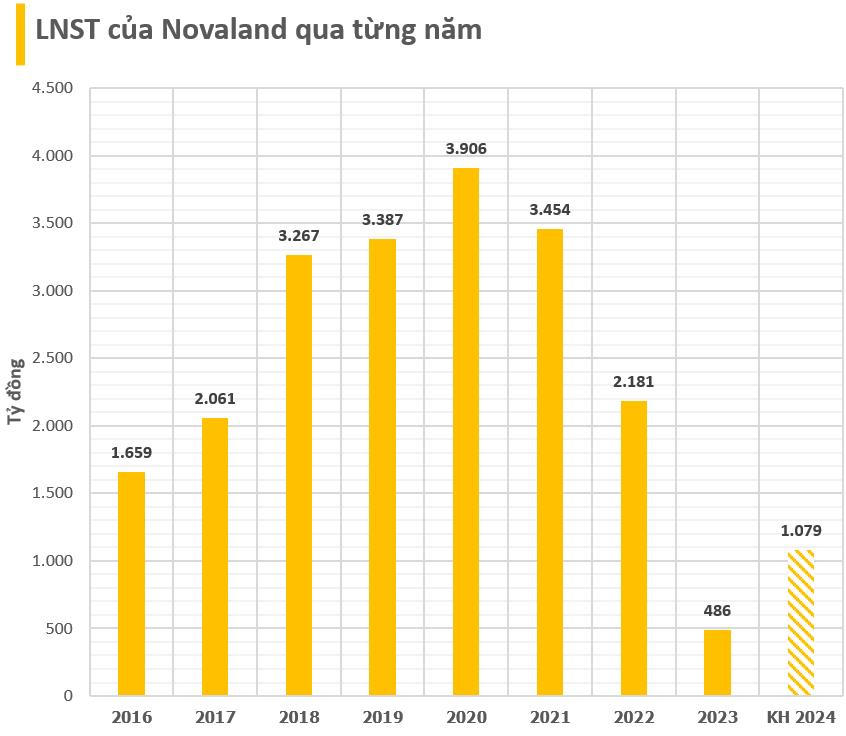 Cụ thể, Novaland đặt mục tiêu năm tới sẽ mang về 32.587 tỷ đồng (tương đương 1,3 tỷ USD) doanh thu; 1.079 tỷ đồng lãi sau thuế, lần lượt tăng 585% và 122% so với cùng kỳ năm trước. Doanh nghiệp chưa có kế hoạch chia cổ tức năm 2024 giữ lại toàn bộ lợi nhuận sau thuế chưa phân phối của năm 2023 còn lại 13.494 tỷ đồng.