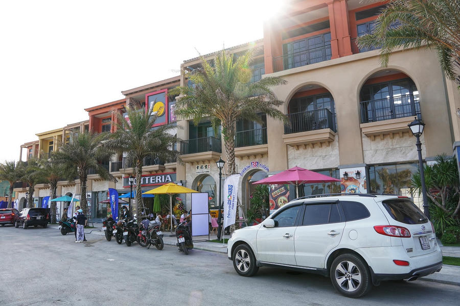 Cuối tháng 4/2021, dãy nhà phố thương mại mặt tiền biển đã đón hàng trăm lượt khách đến trải nghiệm các thương hiệu quốc tế nổi tiếng như Lotteria, Xing Fu Tang, Baskin Robbins.