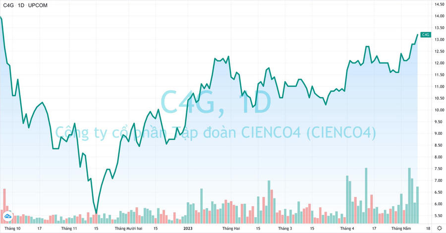 Đáng chú ý, ngay sau khi hoàn tất đợt chào bán, cổ phiếu C4G trên thị trường đã liên tục tăng mạnh qua đó leo lên đỉnh 7 tháng. Thị giá cổ phiếu này hiện đang dừng ở mức 13.300 đồng/cp, gấp gần 2,4 lần so với đáy hồi giữa tháng 11 năm ngoái. Ước tính, nhà đầu tư 19 tuổi đang tạm lãi hơn 50 tỷ đồng (tương đương 33%) chỉ sau 3 ngày vung tiền làm cổ đông của Cienco4.