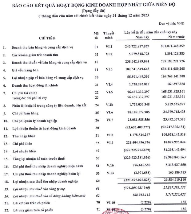 Lỗ kỷ lục hơn 300 tỷ đồng nửa đầu năm 2023