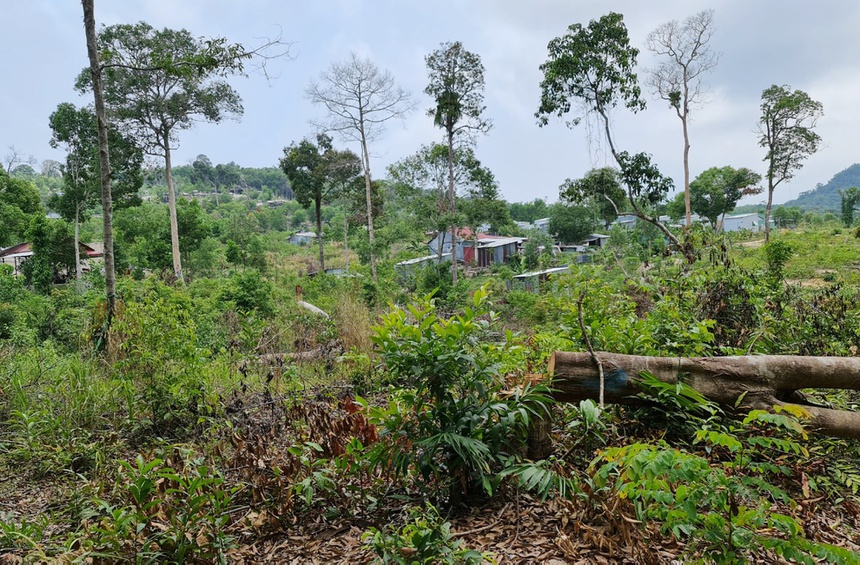 Tại xã Gành Dầu, 3 năm trước chính quyền địa phương phát hiện nhiều cây rừng bị người dân chặt, đốt trên khu đất rất rộng nằm trong khu vực vùng đệm của Vườn Quốc gia Phú Quốc. Giữa tháng 3/2021, phóng viên Zing trở lại nơi này phát hiện khoảng 100 căn nhà cấp 4 được xây cất đủ kiểu.