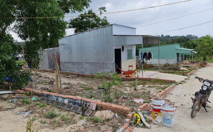 Tại khu đất rộng khoảng 2 ha được phân ra nhiều lô thuộc ấp Chuồng Vích (Gành Dầu), 2 người đàn ông địa phương đang xây nhiều căn nhà vách tôn. Hai thợ xây cho biết họ được chủ đất trả tiền công mỗi người 500.000 đồng một ngày để cất nhà tạm.
