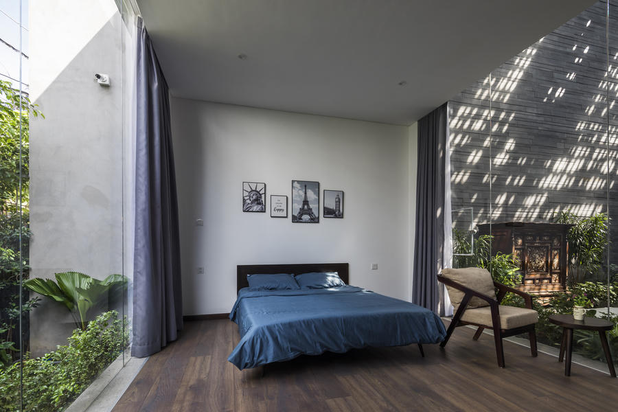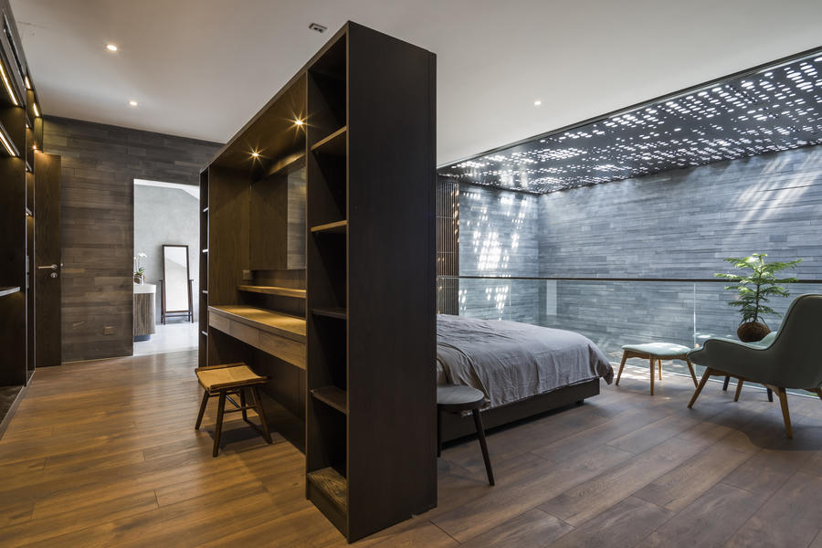 Phòng ngủ cũng được thiết kế theo phong cách mở, không giới hạn.