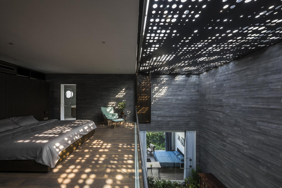Ánh nắng xuyên qua tấm lợp với những hình tròn to nhỏ tạo ra khung cảnh nên thơ, giúp chủ nhân của căn phòng được hòa mình trong nắng.