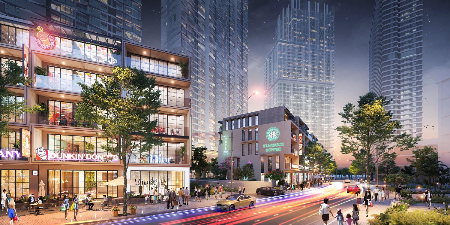 Bạn sẽ thỏa sức mua sắm “cả thế giới”, check-in, giải trí hay thưởng thức những món ăn Âu - Á nổi tiếng ngay tại khu shophouse ở 3 tầng khối đế dưới chân tòa tháp hoặc 2 dãy shophouse hiện đại cao từ 4 - 5 tầng ngay trong tổ hợp. Thay vì phải lặn lội xa xôi để gặp gỡ bạn bè, bạn có thể tận hưởng không gian cà phê xanh mát, nhà hàng đa dạng ngay trong chính khuôn viên nơi mình đang sống.