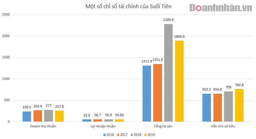 Trong năm 2017, doanh thu của Công ty cổ phần Du lịch Văn hóa Suối Tiên đạt 264,9 tỷ đồng, lợi nhuận thuần của công ty đạt 56,7 tỷ đồng, tương đương với mức tăng trưởng 10,6% doanh thu và 5,8% lợi nhuận so với năm 2016. Trong năm 2018, doanh thu và lợi nhuận của công ty tăng trưởng lần lượt là 4,6% và 0,4% tương ứng với 277 tỷ đồng và 56,9 tỷ đồng. Năm 2019, ghi nhận đều có sự sụt giảm so với các năm trước, doanh thu thuần đạt 257,8 tỷ đồng, lợi nhuận thuần đạt 54,66 tỷ đồng, giảm 7% doanh thu và 4% lợi nhuận so với 2018.