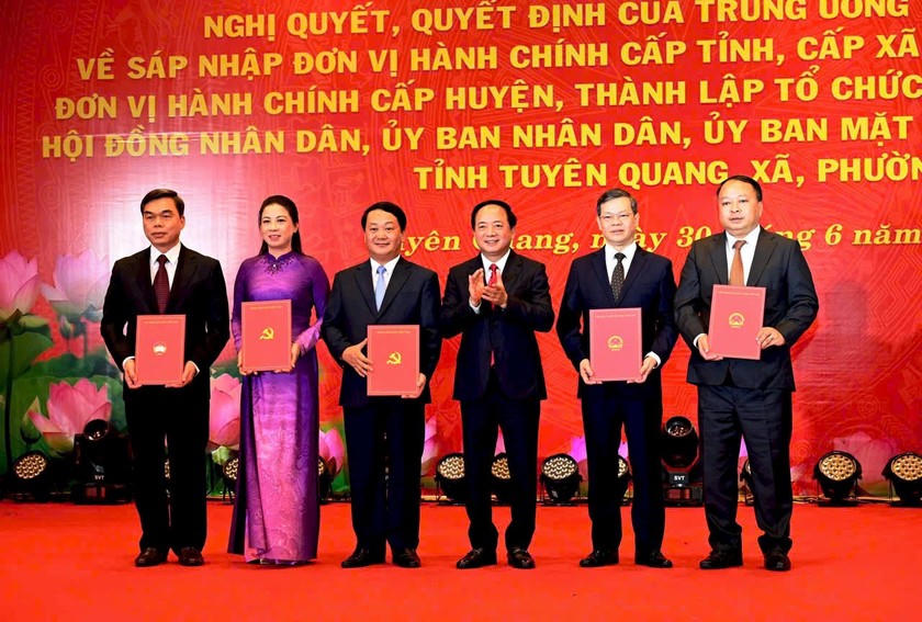 Ngày 30/6, Ban Thường vụ tỉnh Hà Giang và Tuyên Quang tổ chức Lễ Công bố Nghị quyết, Quyết định của Trung ương và địa phương về sáp nhập đơn vị hành chính cấp tỉnh, cấp xã.