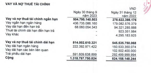 Vay và nợ thuê tài chính ngắn, dài hạn ghi nhận tại 1.318,7 tỷ đồng, tăng 59% so với đầu năm. Trong đó, vay chính là khoản vay ngắn hạn và dài hạn ngân hàng (tới 658 tỷ đồng), tiếp đến là khoản trái phiếu dài hạn với 591,6 tỷ đồng...