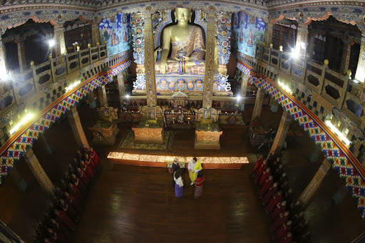 Bước vào trong tu viện, du khách sẽ thấy trước các gian thời được bố trí những hàng đèn dầu ngay ngắn, tại những tu viện ở Bhutan người ta có thể dùng bơ Yak để làm chất đốt thay cho loại dầu hỏa thông thường.