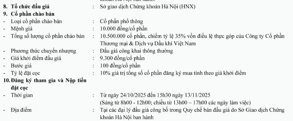 Giá khởi điểm đấu giá là 9.300 đồng/cổ phần, tương đương Petrovietnam sẽ thu về tối thiểu gần 97,7 tỷ đồng cho số cổ phần trên nếu bán hết.