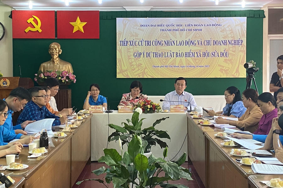 Hơn 20 ý kiến xoay quanh quy định được hưởng bảo hiểm xã hội một lần, các vấn đề liên quan đến lương hưu, giảm tuổi nghỉ hưu, giảm thời gian đóng bảo hiểm xã hội, chế độ trợ cấp thai sản, thời gian hưởng chế độ khi đình chỉ thai nghén, tử tuất… được đông đảo công nhân lao động và chủ doanh nghiệp đặc biệt quan tâm góp ý cho Dự thảo Luật Bảo hiểm xã hội (sửa đổi) tại buổi tiếp xúc cử tri do Đoàn đại biểu Quốc hội Thành phố Hồ Chí Minh phối hợp cùng Liên đoàn Lao động Thành phố tổ chức chiều 18/10.