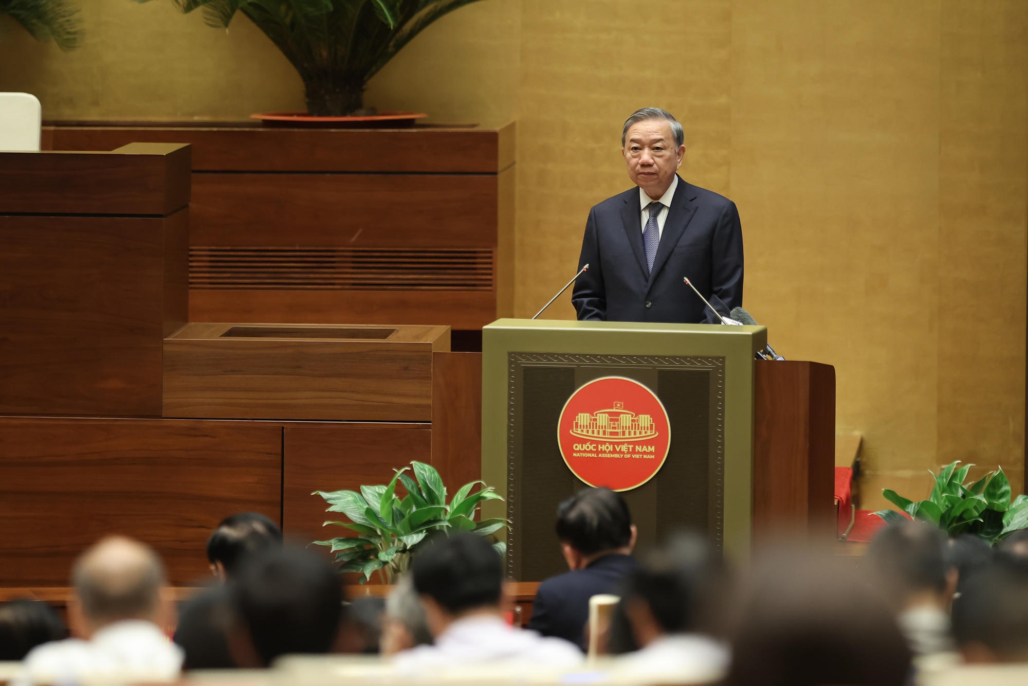 Tôi kêu gọi toàn hệ thống chính trị, các cấp ủy, chính quyền, Mặt trận Tổ quốc và các đoàn thể; kêu gọi cộng đồng doanh nghiệp, các nhà ngoại giao, đội ngũ trí thức, nhà giáo, thầy thuốc, công nhân, nông dân, thanh niên cả nước đồng lòng, đồng sức, chung tay thực hiện. Mỗi người một việc cụ thể, mỗi ngày một kết quả cụ thể, kiên trì, bền bỉ, có phương pháp, có kỷ luật, có sáng tạo. Hãy làm cho tinh thần các Nghị quyết được triển khai hôm nay thấm vào mọi cấp, mọi ngành, vào mọi thành phần xã hội, tới từng phường xã, làng bản, thôn xóm, tới từng lớp học, từng phân xưởng, từng cánh đồng, từng ngôi nhà, từng người dân; biến khát vọng thành hành động, biến hành động thành kết quả, biến kết quả thành niềm tin mới.
