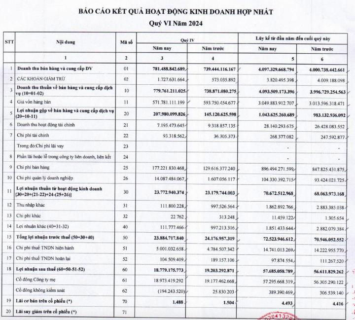 Theo báo cáo tài chính hợp nhất quý IV/2024, Công ty cổ phần Phát hành sách TP HCM (Fahasa, mã ck: FHS) ghi nhận doanh thu thuần quý IV/2024 đạt 779,7 tỷ đồng, tăng 5,5% so với cùng kỳ năm ngoái.