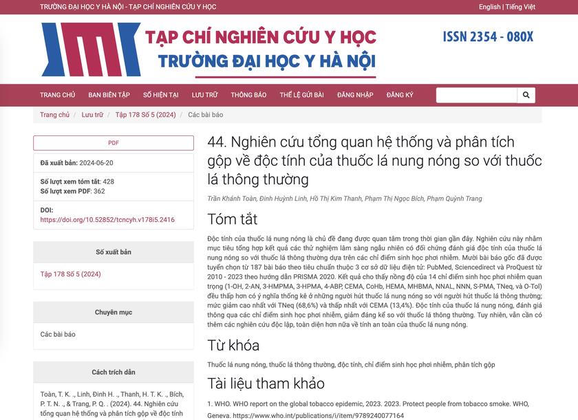 Về tính độc hại, nghiên cứu từ nhóm chuyên gia y học gia đình thuộc Trường Đại học Y Hà Nội, công bố trên tạp chí Nghiên cứu Y học tháng 7/2024, cũng cung cấp những bằng chứng mà các cơ quan chức năng nên xem xét.