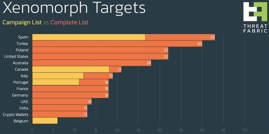 Xenomorph lần đầu tiên được phát hiện vào tháng 2.2022, được hackers cài cắm vào bên trong ứng dụng Fast Cleaner, ứng dụng được quảng cáo là chuyên dọn dẹp rác và cải thiện hiệu quả sử dụng pin smartphone, có trên Google Play Store. Theo Threat Fabric, thời điểm đó, có đến hơn 56 ngân hàng Châu Âu, từ Tây Ban Nha, Bồ Đào Nha, Ý và Bỉ, đã bị mã độc Xenomorph này nhắm đến.